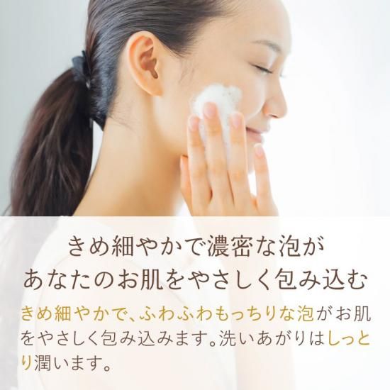 きめ細やかで、ふわふわもっちりな泡があなたのお肌をやさしく包み込みます。洗いあがりはしっとり潤います。泡立てネットを使うことでより濃密な泡に仕上がりますのでおすすめです。